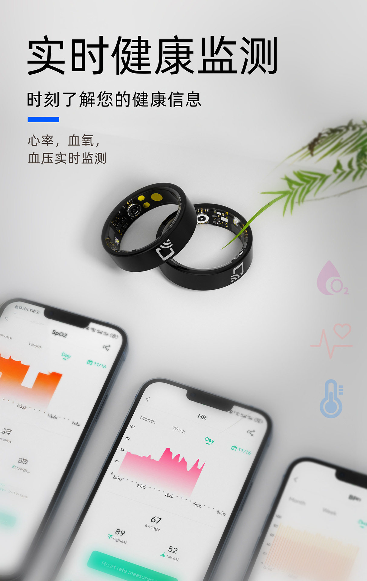 Cross-border new heart rate blood oxygen exercise healthy sleep automatic monitoring R20 ceramic smart ring with NFC access control